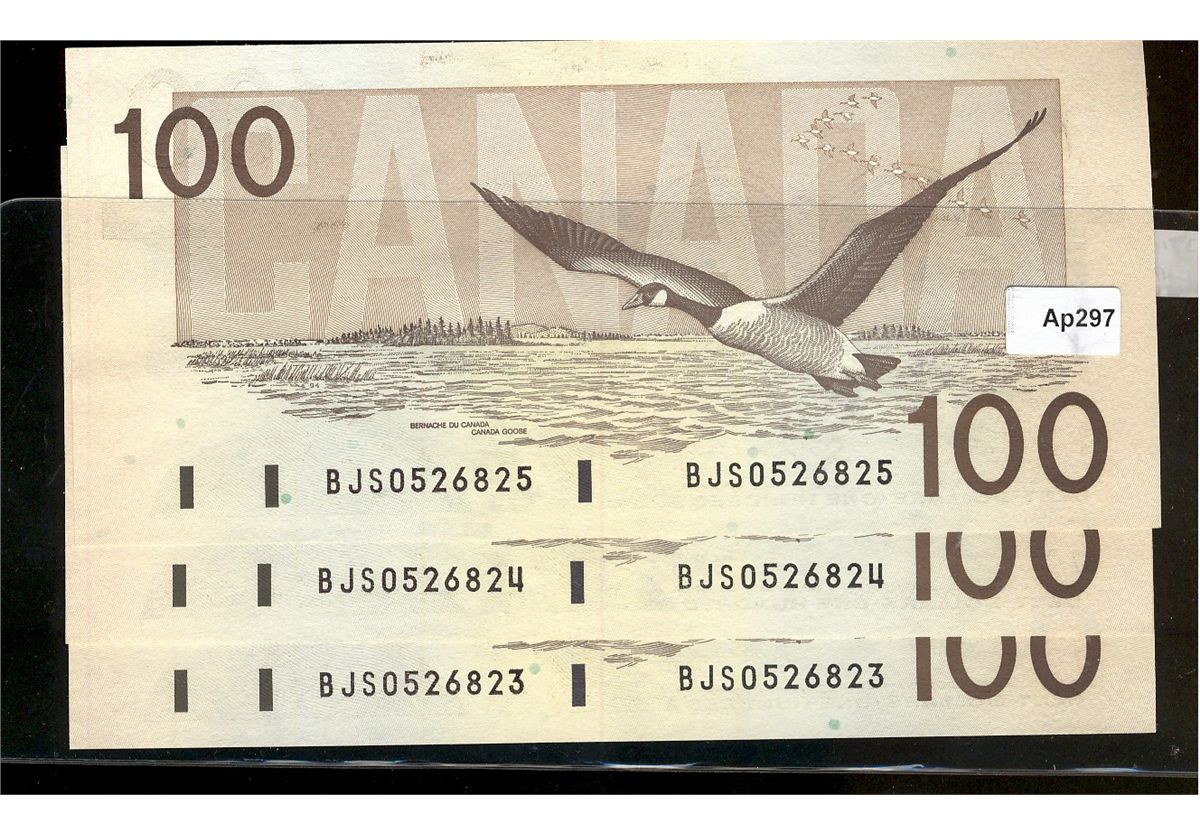 1988 $100 BC-60d #BJS0526823-825. Lot of 3 Original Crisp UNC issues.