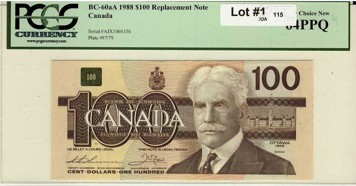 1988 $100 repl BC-60aA AJX 1066156 PCGS 64 PPQ