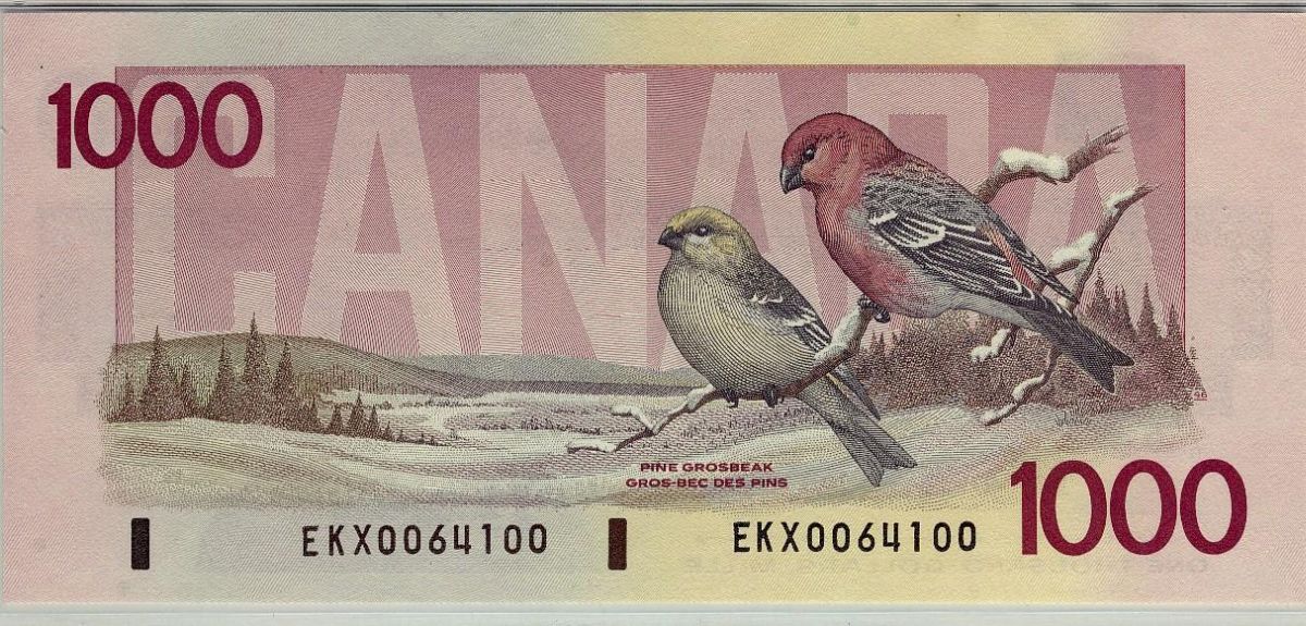 1988 $1000 BC-61aA #EKX0064100, PMG AU58. A scarce replacement note.