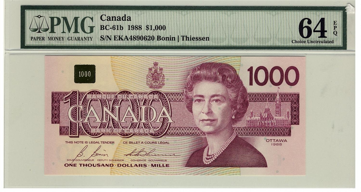 1988 $1000 BC-61b #EKA4890620, PMG CH UNC64EPQ.