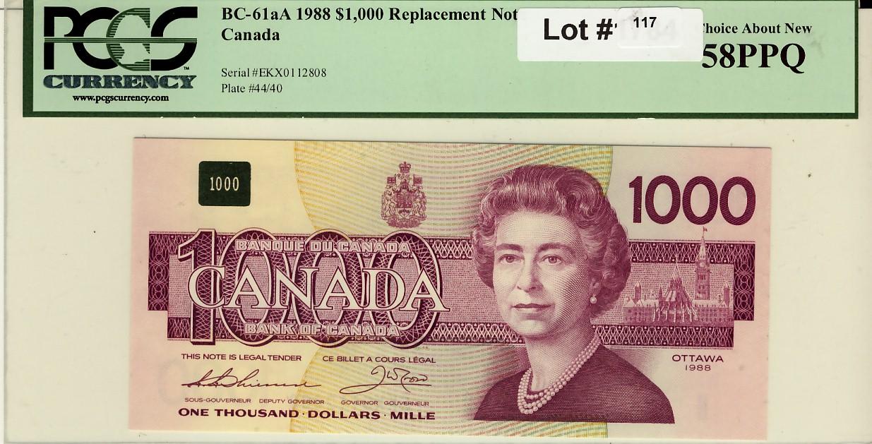 1988 $1000 repl BC-61aA EKX 0112808 PCGS 58 PPQ