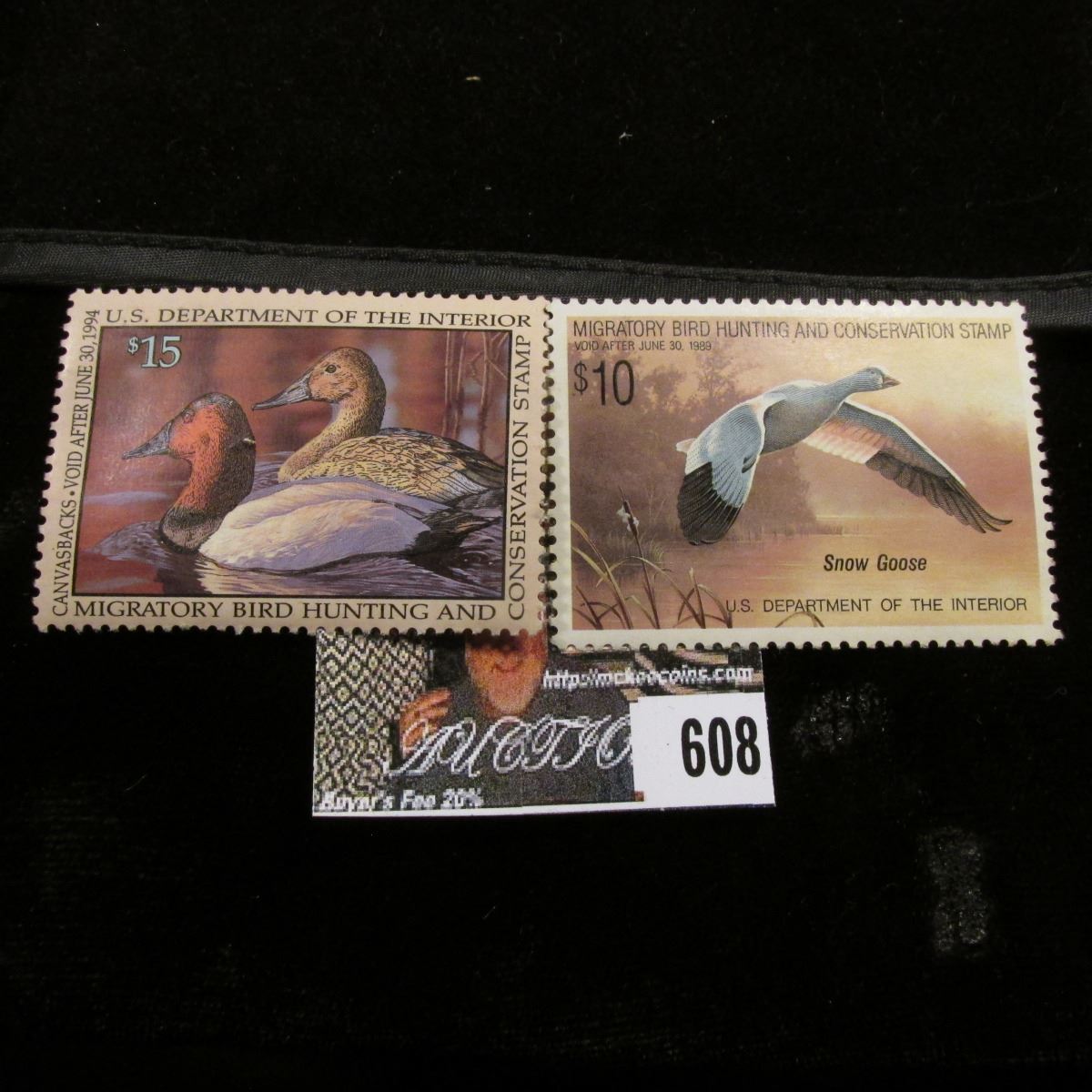 1988 & 1993 Mint, unsigned U.S. Department of the Interior Migratory Waterfowl Stamps, some gum.