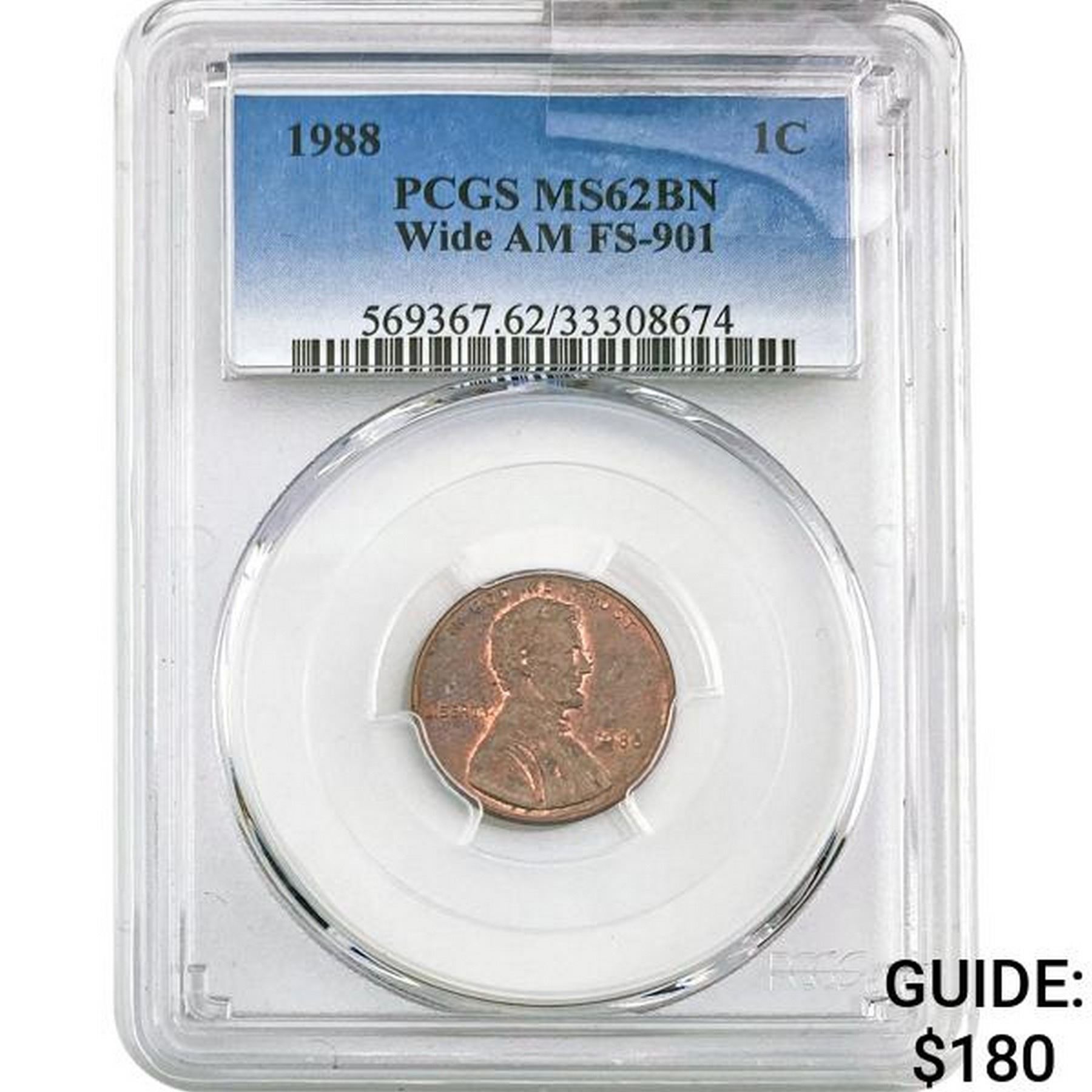 1988 1C Wide AM FS-901 PCGS MS62BN