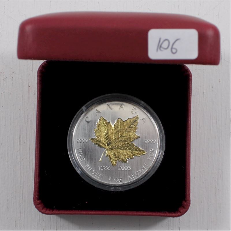 1988-2008 $5 1oz. Silver Maple Leaf Coin 20th Anniversary No TAX