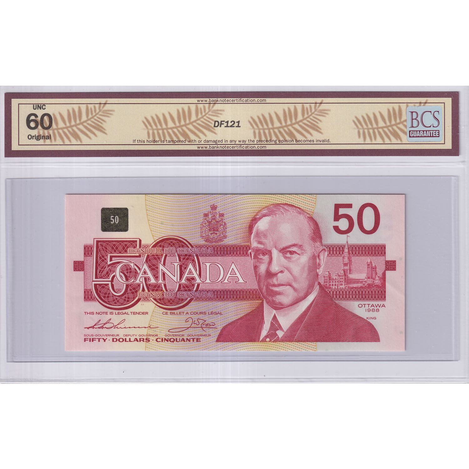 1988 $50 BC-59a-N5-iv, Bank of Canada, Thiessen-Crow, Low Serial Number EHP0000230, BCS Certified UN