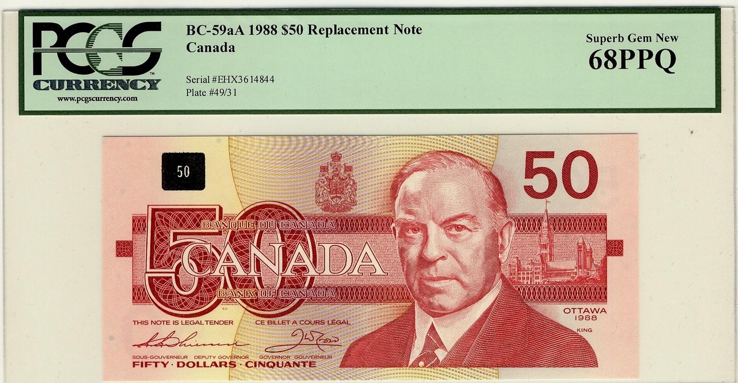 1988 $50 BC-59aA #EHX3614844 PCGSUNC 68PPQ