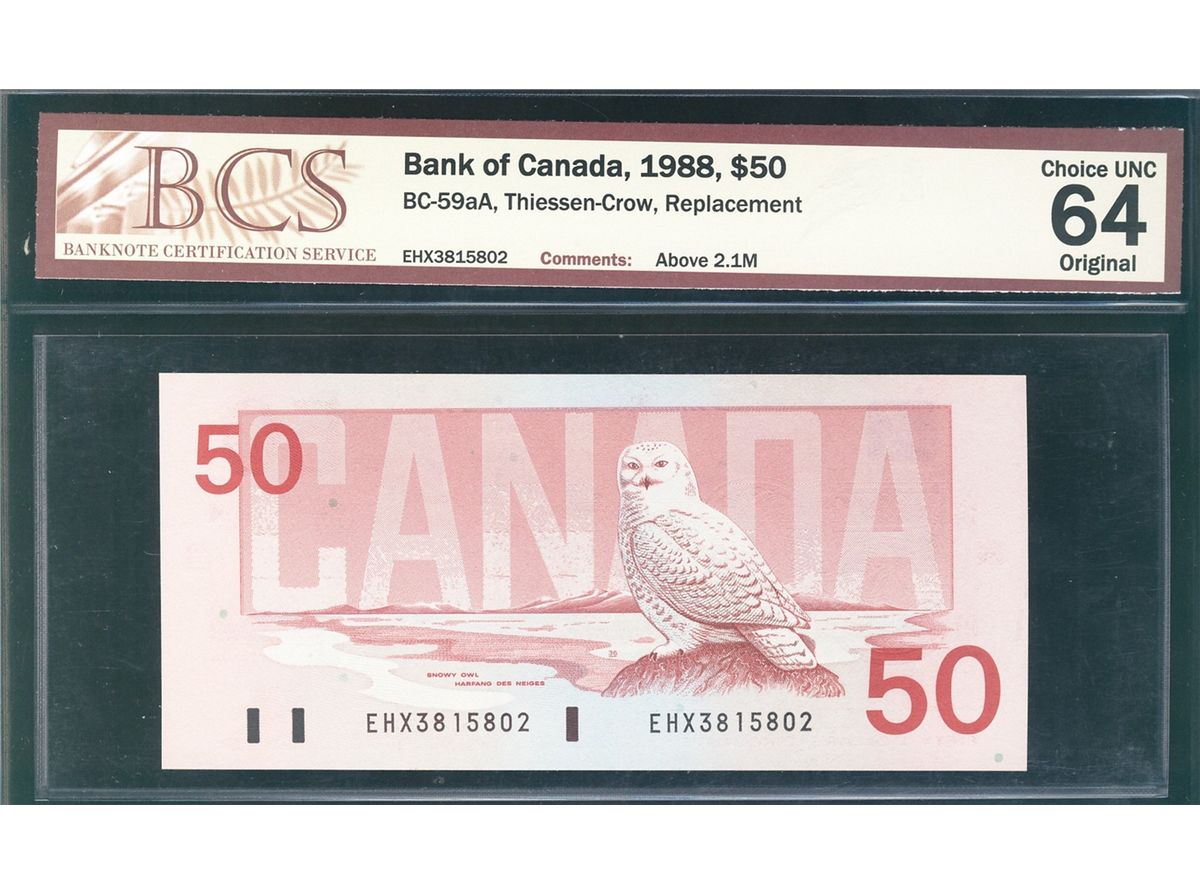 1988 $50 BC-59aA #EHX3815802 BCS CH UNC64 Original. Above 2,1M.
