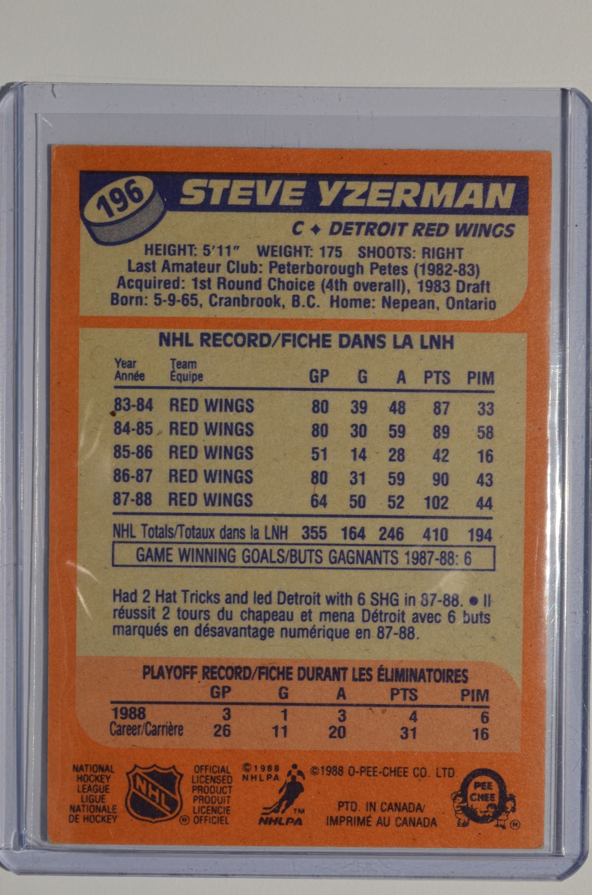 1988-89 O-Pee-Chee #196 Steve Yzerman