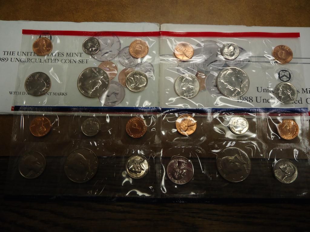 1988 & 89 US MINT SETS (UNC) P/D (WITH ENVELOPES)