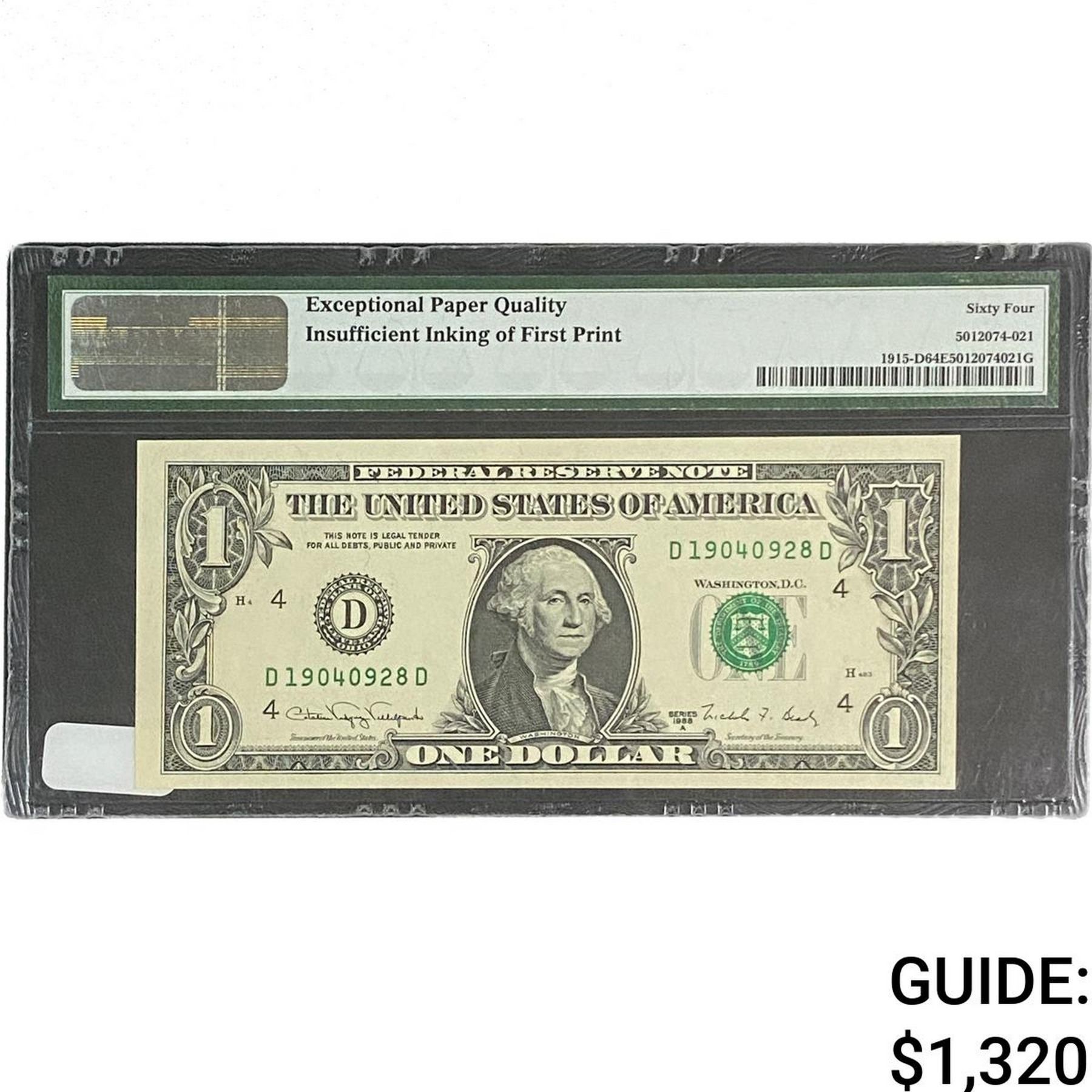 1988-A $1 Federal Reserve Note Cleveland PMG CU 64