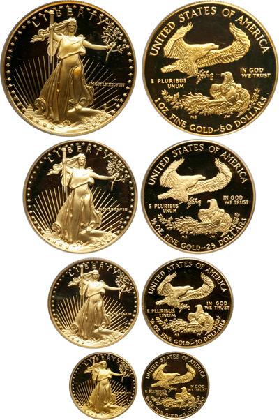 1988 American Gold Eagle Proof Set. PCGS graded all Proof 69 Deep Cameo. Consists of: 1 oz., ½ oz., ¼ oz., and tenth oz.