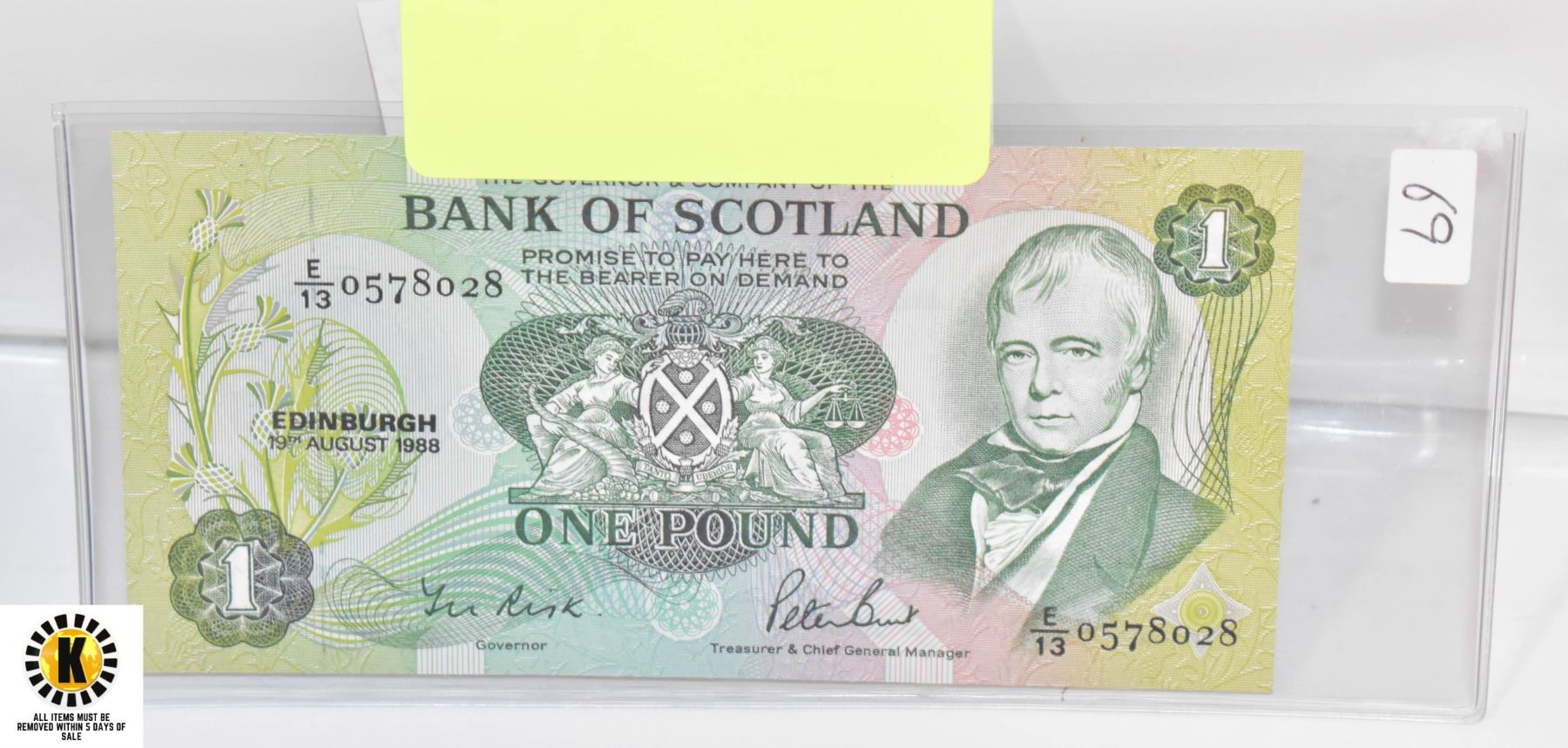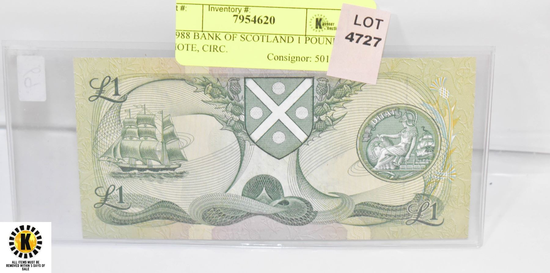 1988 BANK OF SCOTLAND 1 POUND NOTE, CIRC.