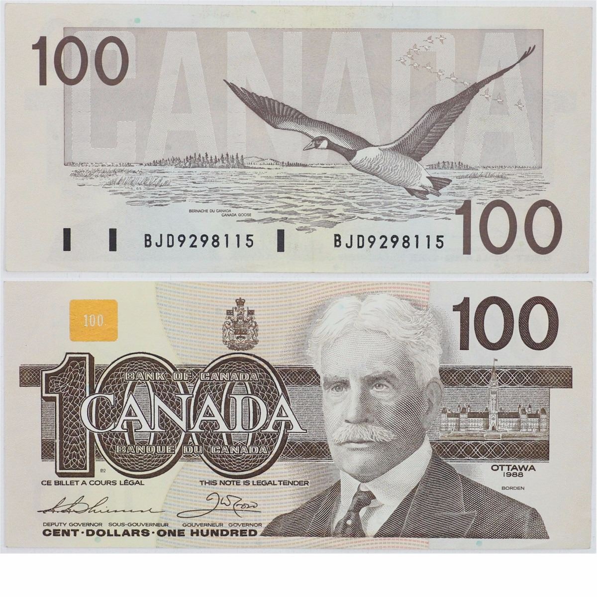 1988 Bank of Canada $100; cat code BC-60a-i, BJD9298115