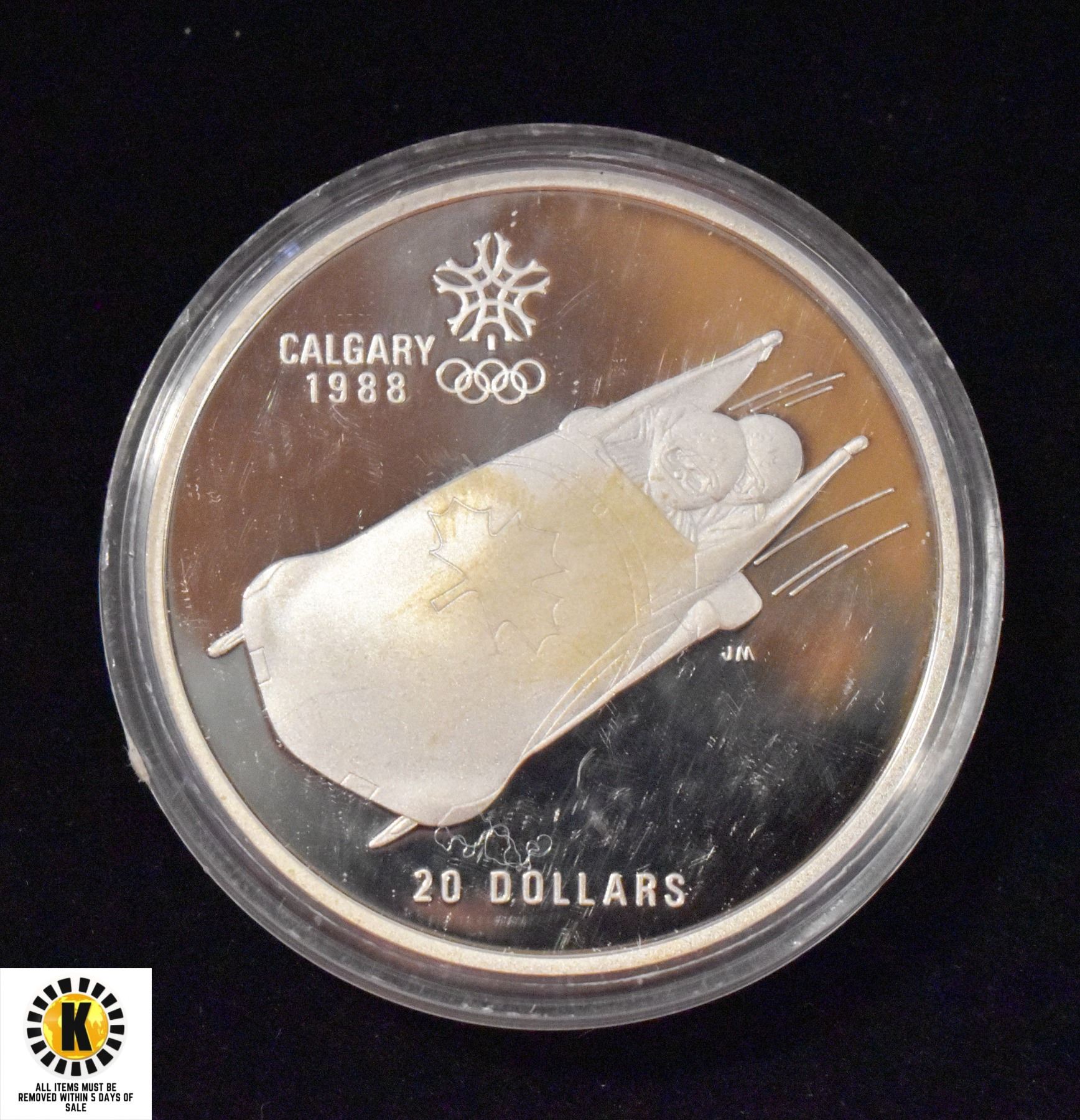 1988 CALGARY OLYMPICS $20 SILVER COIN "BOBSLEIGH"