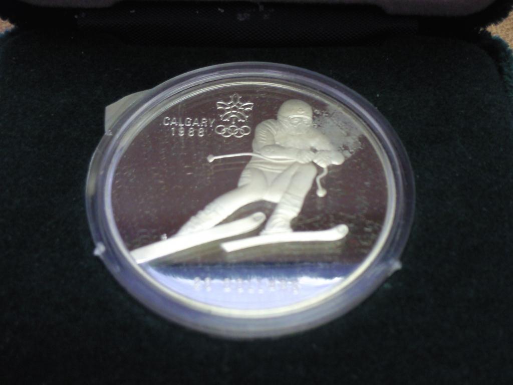 DOWNHILL SKIING STERLING SILVER 1 TROY OZ OF SILVER TOTAL, ORIGINAL ROYAL CANADIAN MINT PACKAGING