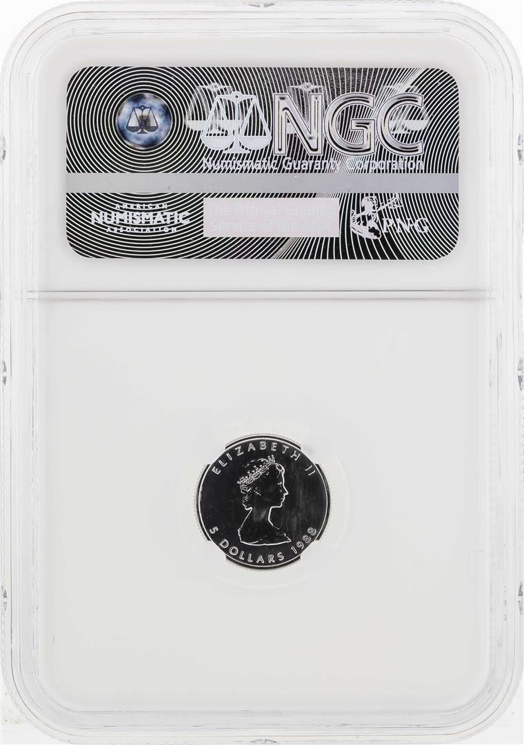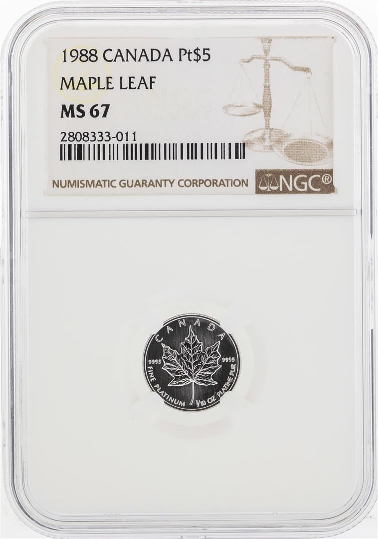 One 1988 Canada $5 Maple Leaf Platinum Coin NGC MS67. NGC Certified.