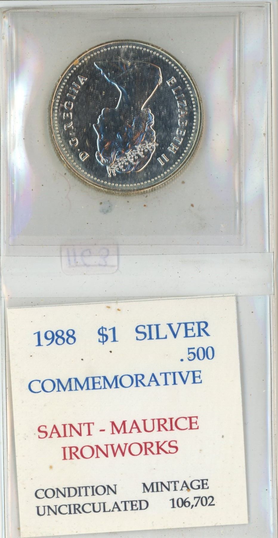 1988 Canadian Specimen Dollar. Commemorates the first heavy industry in Canada. SP-66.