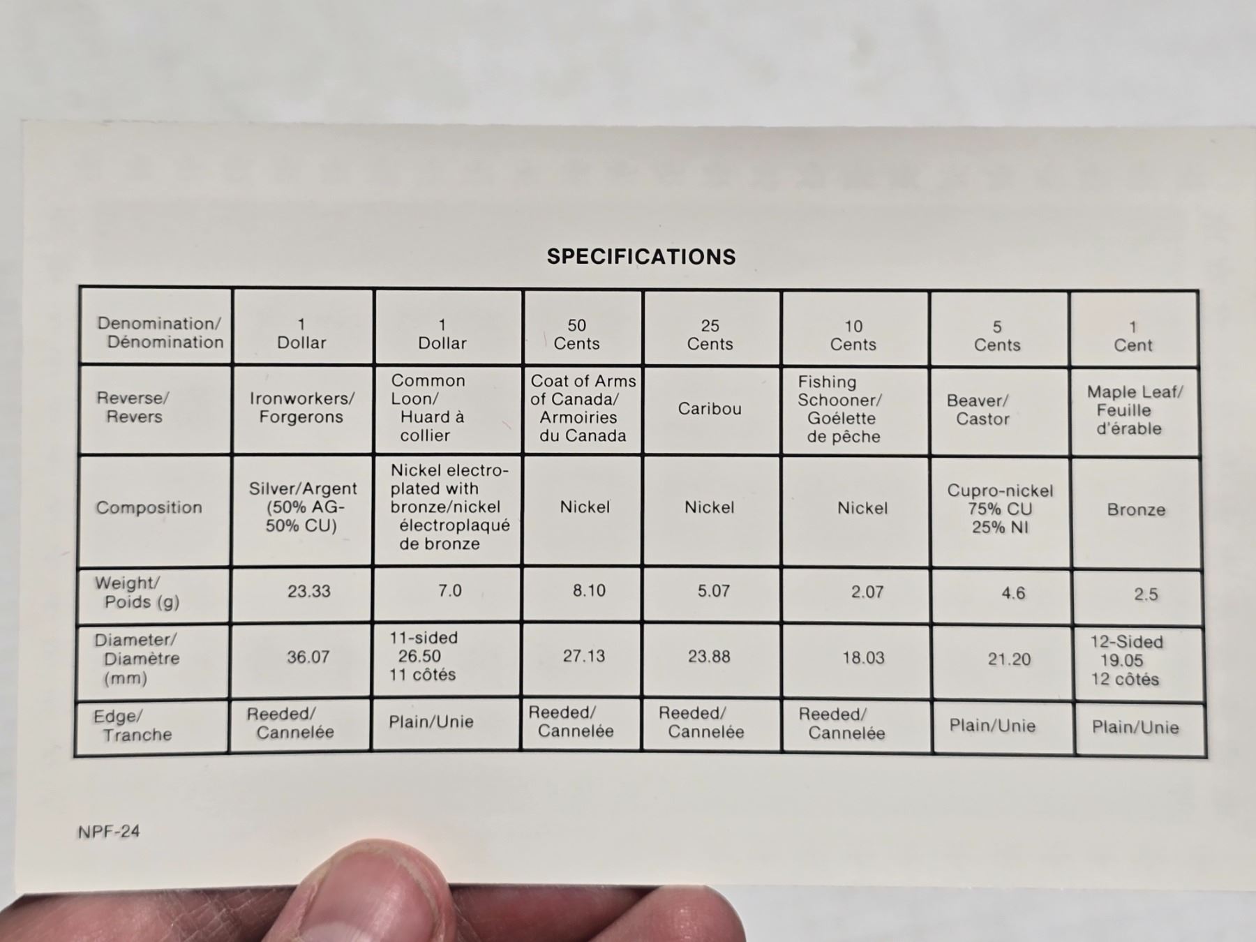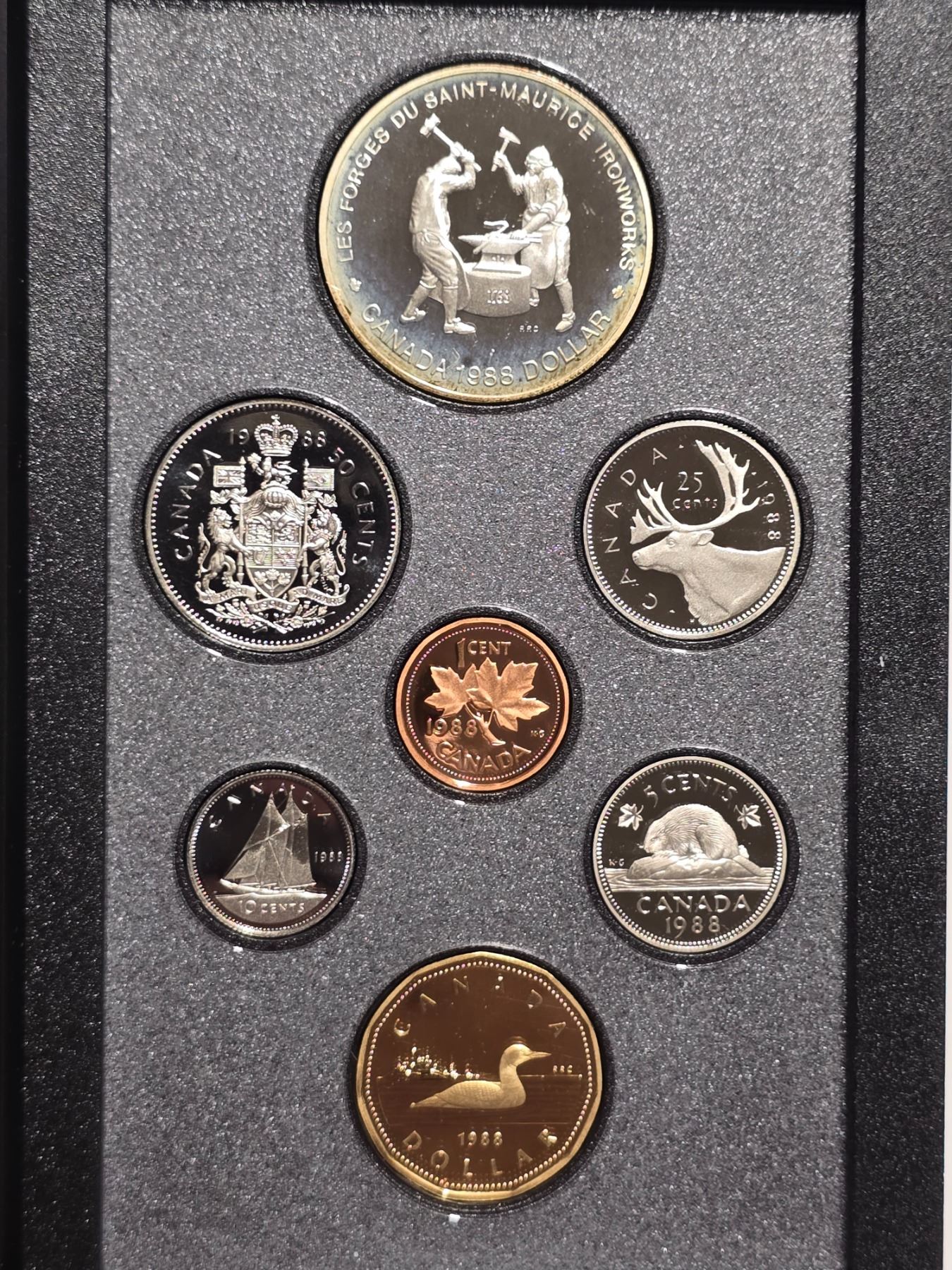 1988 Canadian double dollar 7 coin specimen set. Includes "Ironworks" silver dollar
