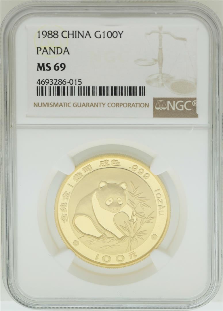 One 1988 China 100 Yuan Panda Gold Coin NGC MS69. NGC Certified.