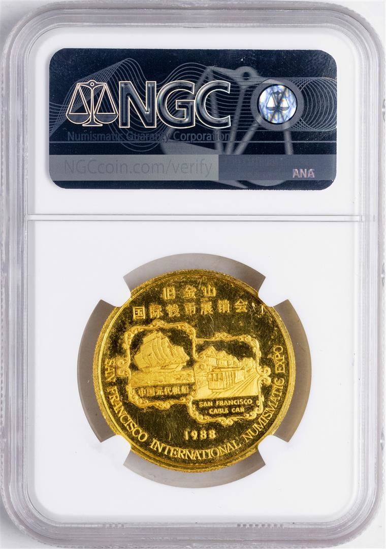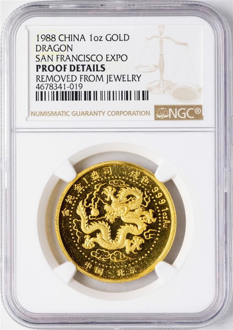 One 1988 China 1oz Gold San Francisco Expo Dragon Proof Coin NGC Proof Details. NGC Certified.
