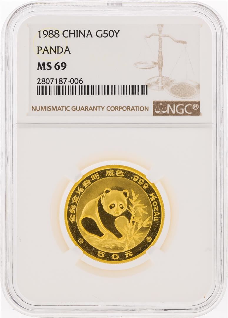 One 1988 China 50 Yuan Gold Panda Coin NGC MS69. NGC Certified.
