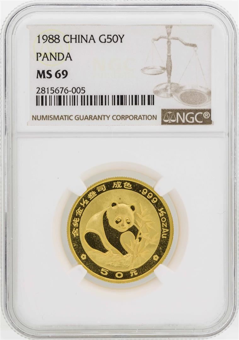 One 1988 China 50 Yuan Panda Gold Coin NGC MS69. NGC Certified.