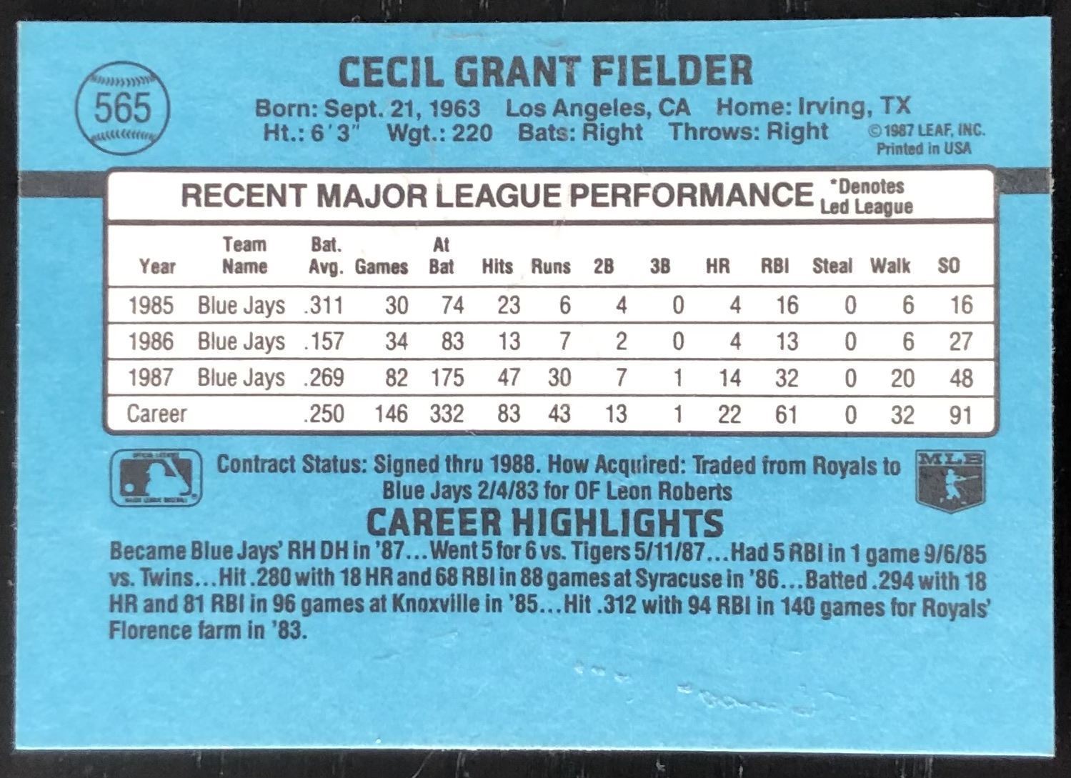 Card #565 MLB, baseball