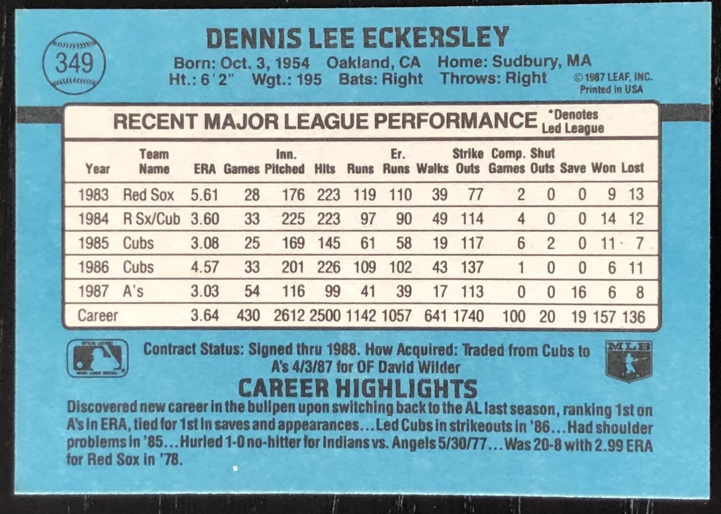 Card #349 MLB, baseball, hall of fame