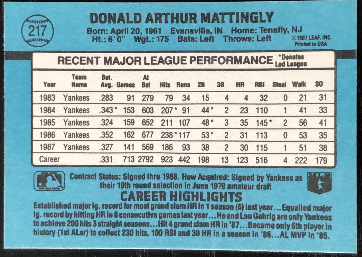 Card #217 MLB, baseball