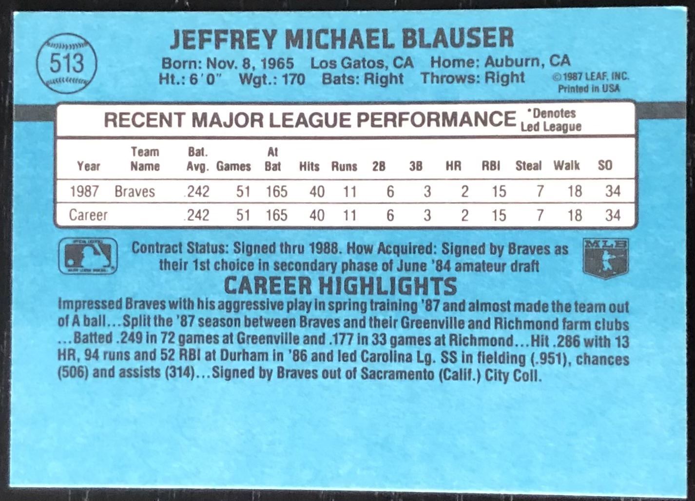Card #513 MLB, baseball, rookie