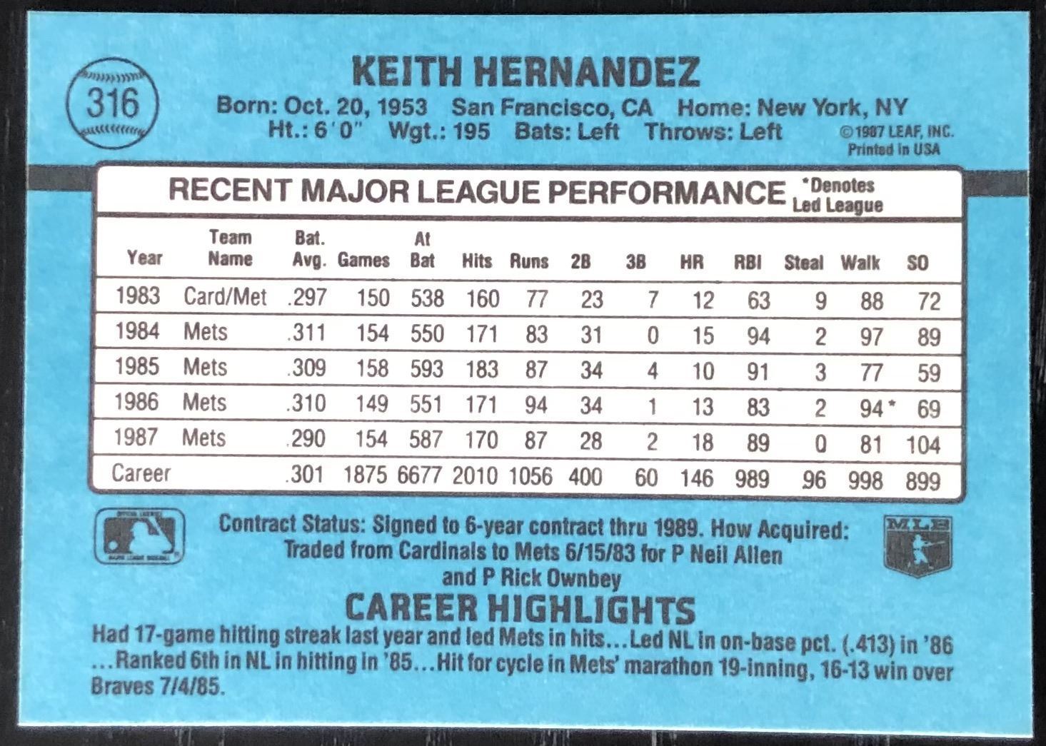 Card #316 MLB, baseball
