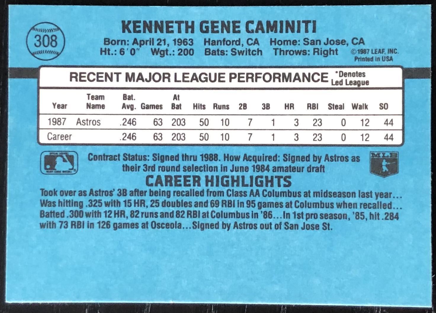 Card #308 MLB, baseball, rookie