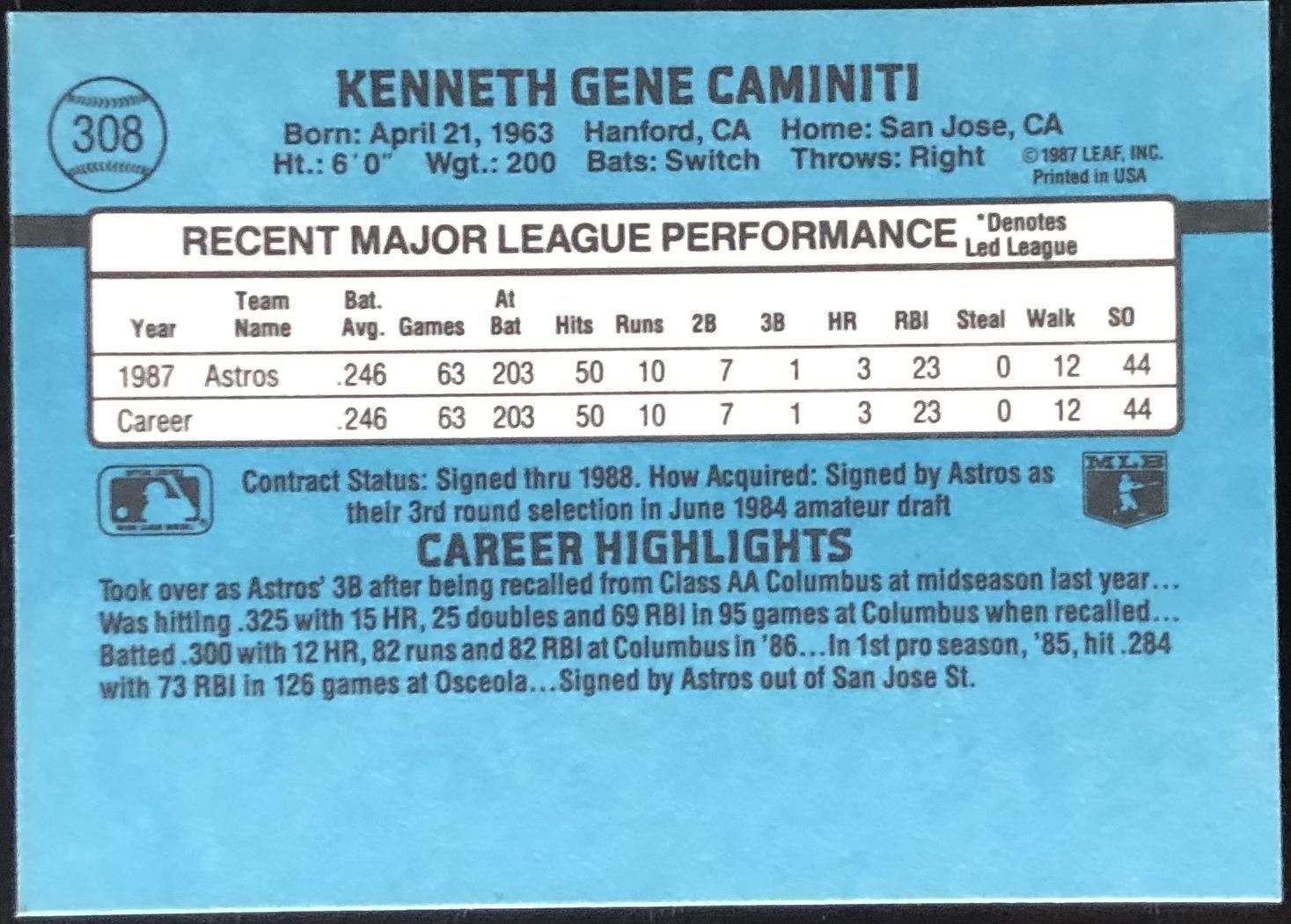 Card #308 MLB, baseball, rookie