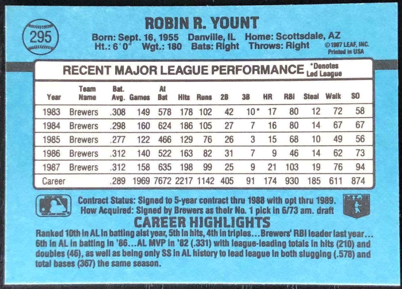 Card #295 MLB, baseball, hall of fame