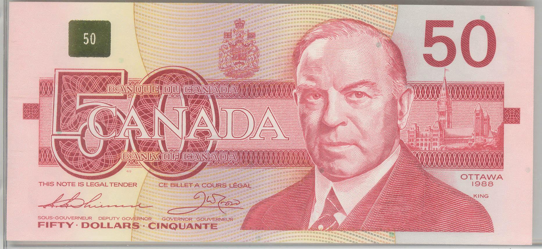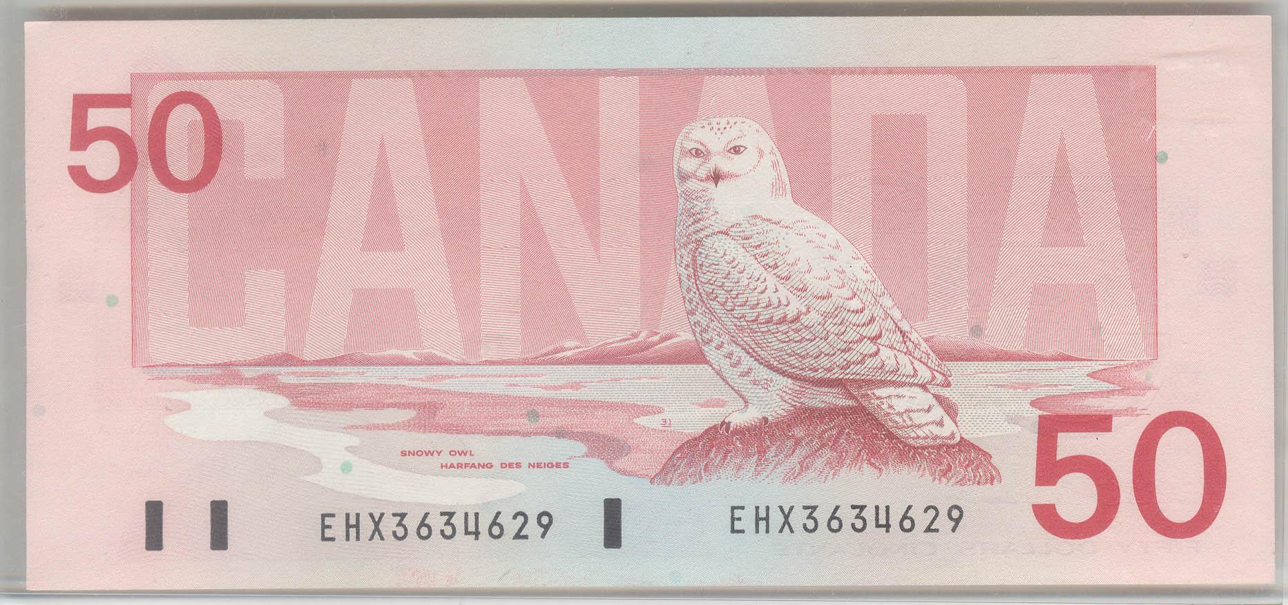 1988 Fifty Dollars Replacement, BC-59aA, CCGS UNC-62 in hard casing, Thiessen Crow, serial EHX3634629 above 2.1m.