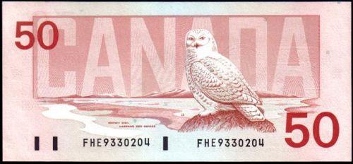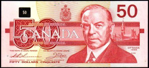 1988 Fifty Dollars Thiessen-Crow, BC-59a Serial Number FHE9330204, Uncirculated