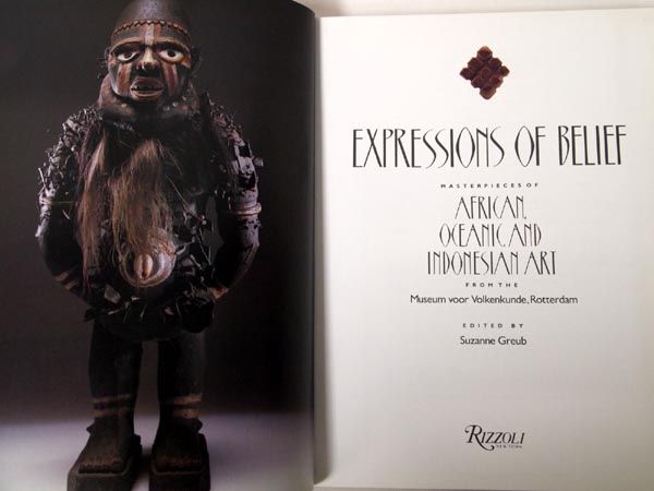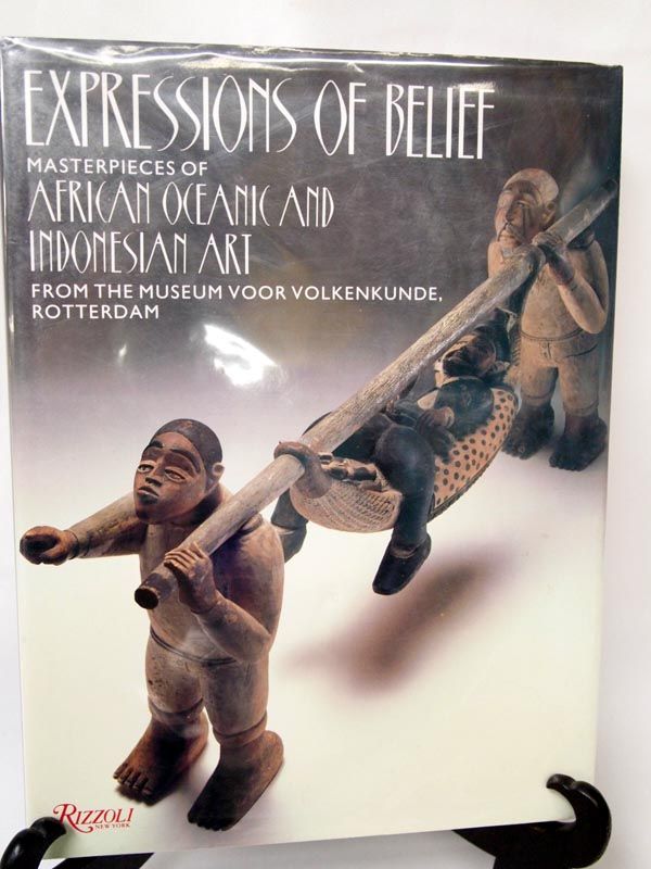 1988 Hardback Book ''Expressions of Belief''. Masterpieces of African Oceanic and Indonesian Art from the Museum Voor Vokenkunde, Rotterdam. Rizzoli, New York, 1988. Fine hardback in near fine dustjacket, protected by Mylar cover. Lovely coffee table and reference book with stunning color photos of key pieces of art. 248 pgs. Measures 12''x9.25''.