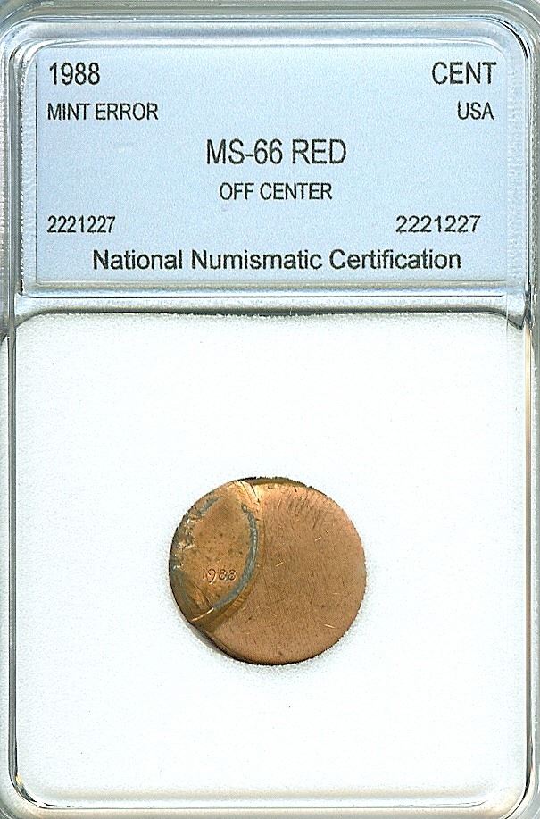 1988 LINCOLN CENT NNC MS66 RED OFF CENTER ERROR