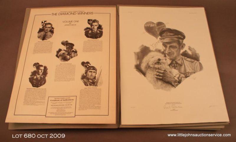 1988 Limited edition print series Vol. II by J. Keck signed and numbered 254 of German WWII knight's cross w/ diamond winners with print of Adolf Galland signed by Galland. A Galland was the most identified "personality" in the air force being made general at 30 years old and flying 425 missions with 104 victories. Est. $200 - $400