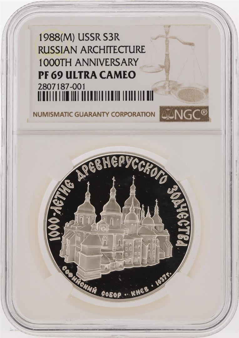 1988(M) USSR 3 Roubles Russian Architecture Coin NGC PF69 Ultra Cameo