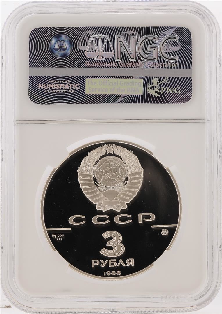 One 1988(M) USSR 3 Roubles Russian Architecture Coin NGC PF69 Ultra Cameo. NGC Certified.