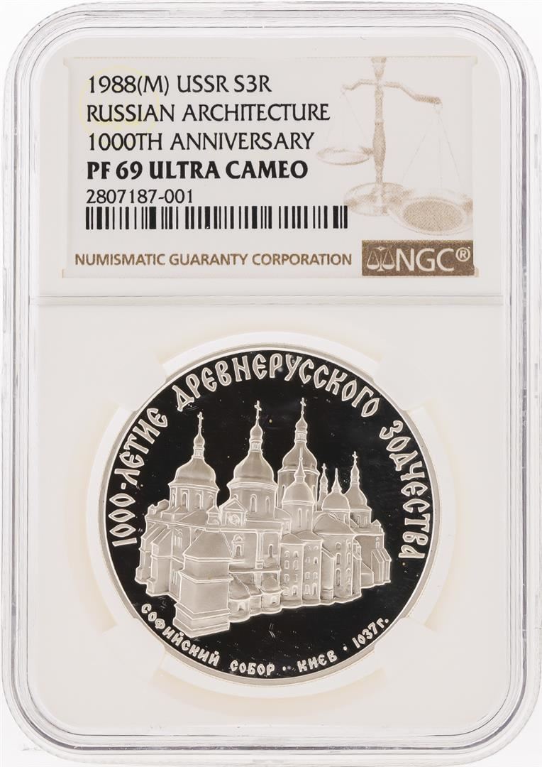 1988(M) USSR 3 Roubles Russian Architecture Coin NGC PF69 Ultra Cameo