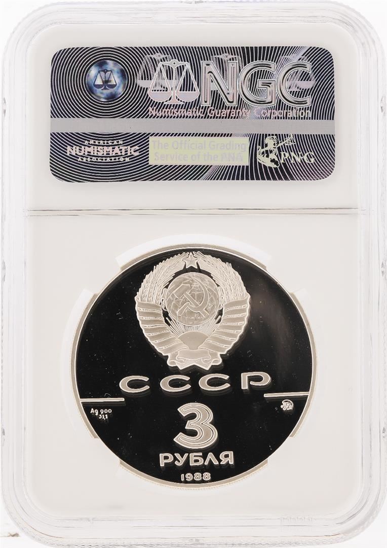 One 1988(M) USSR 3 Roubles Russian Architecture Coin NGC PF69 Ultra Cameo. NGC Certified.