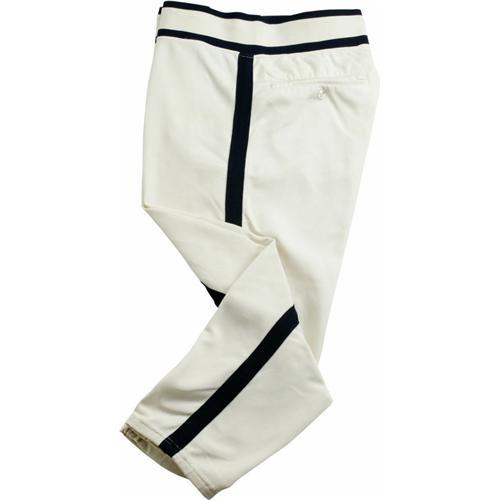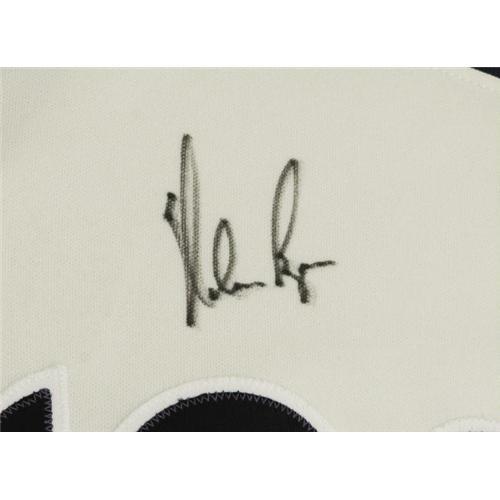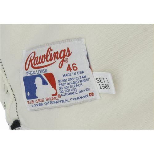 <B>1988 Nolan Ryan Game Worn Uniform.</B></I> The ninth of eleven seasons atop the strike out leader board for the King of K's. The most fearsome power pitcher in the game's long history blew the top off the Astrodome each time he suited up in this home white knit pullover, still bringing the serious heat at age forty-one. "Astros" and star logo are applied to the chest in navy and white tackle twill, with "Ryan 34" taking up the wide expanse of the jersey's back. The unmistakable rainbow design that made the Houston Astros the most daring fashion pioneers in baseball at the time is present in the shoulder striping, and interior tail hides a "Rawlings [size] 46" label with "Set 1 1988" flap tag affixed at right. A perfect black sharpie signature appears at upper left chest. Matching pants are attributed to the 1985 season, as embroidered strip reading "Ryan 34-25 Set 1 '85" details. A "W.A. Goodman & Sons [size] 34" label is found to the left. Finally, a pair of navy blue nylon tights with stirrup feet are here, worn by Ryan under his uniform pants for style and comfort. All three pieces show light but certain wear, and combine to create an unbeatable display. MEARS A5. <I>LOA from MEARS. LOA from Lou Lampson. LOA from PSA/DNA.</B></I> <BR><BR><B>Important notice:</B> Heritage usually auctions material at the rate of 200-250 lots per hour. On some occasions eBay Live bid software or the Internet may not be able to keep up with the pace of the auction. We recommend placing a realistic absentee bid now as insurance to avoid disappointment. Occasionally the auctioneer may eliminate or reject an eBay Live bid, and the auctioneer may also reopen a lot after the close of the eBay live bidding (usually because we missed an audience bid), and may reject your bid even if it shows you as the winning bidder. By bidding via eBay Live, you agree that Heritage may award the lot to another bidder at its sole discretion under the circumstances described above or any other reasonable circumstances. Since eBay bids are not shown to us until we open the lot on the floor, we treat those bids just like floor bids. In most cases the floor responds before the eBay bid is presented to us, due to Internet lag time, so for consistency we have made it a policy that floor bids are always considered first over tie eBay live bids. Also please note that all Heritage lots purchased through eBay Live carry a 22.5% Buyer's Premium. Please make sure you read the Terms and Conditions before you bid. This lot is being auctioned in conjunction with a live floor auction by Heritage Galleries & Auctioneers. All final auction and invoice information will be supplied by Heritage Galleries & Auctioneers, and all other information should be considered preliminary. Lot:19669 <BR><BR><B>Winning Notification and Billing:</B> After the FINAL session in this auction is complete, Heritage will send e-mail and snail mail invoices. This process normally takes several days. All final auction and invoice information will be supplied by Heritage Galleries & Auctioneers, and all other information should be considered preliminary. <BR><BR>This auction will be conducted on a live auction floor and over the Internet through eBay Live. If you choose to place an absentee bid, please take a moment to <font color='#0000ff'><u><a href='http://pages.ebay.com/liveauctions/help/before/laabsentee.html'>learn how eBay Live absentee bidding works</a></u></font><font color='#000000'>