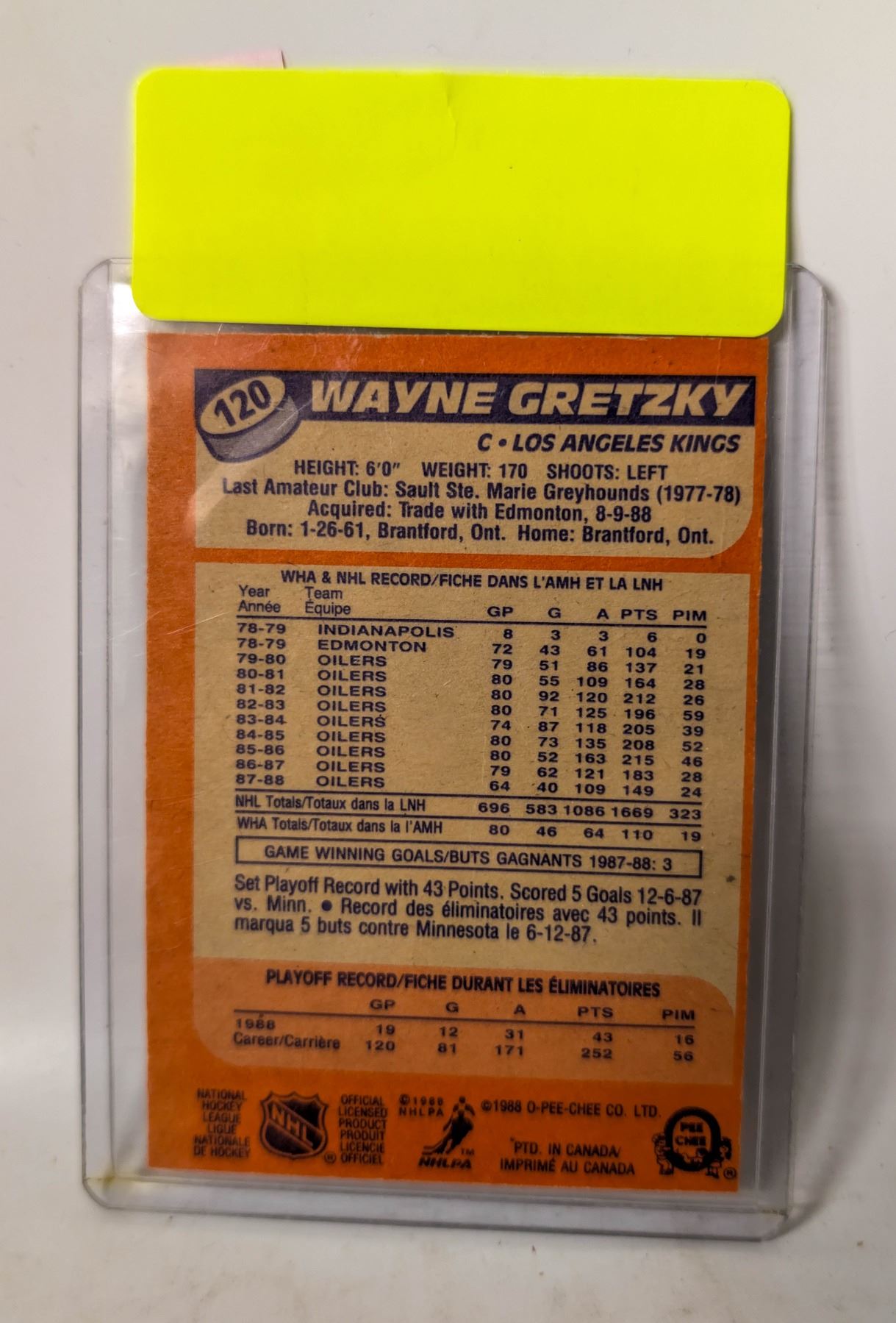 1988 OPC WAYNE GRETZKY CARD
