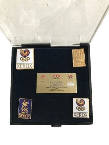 The pins are gold-toned with the Olympic rings and the Xerox logo.