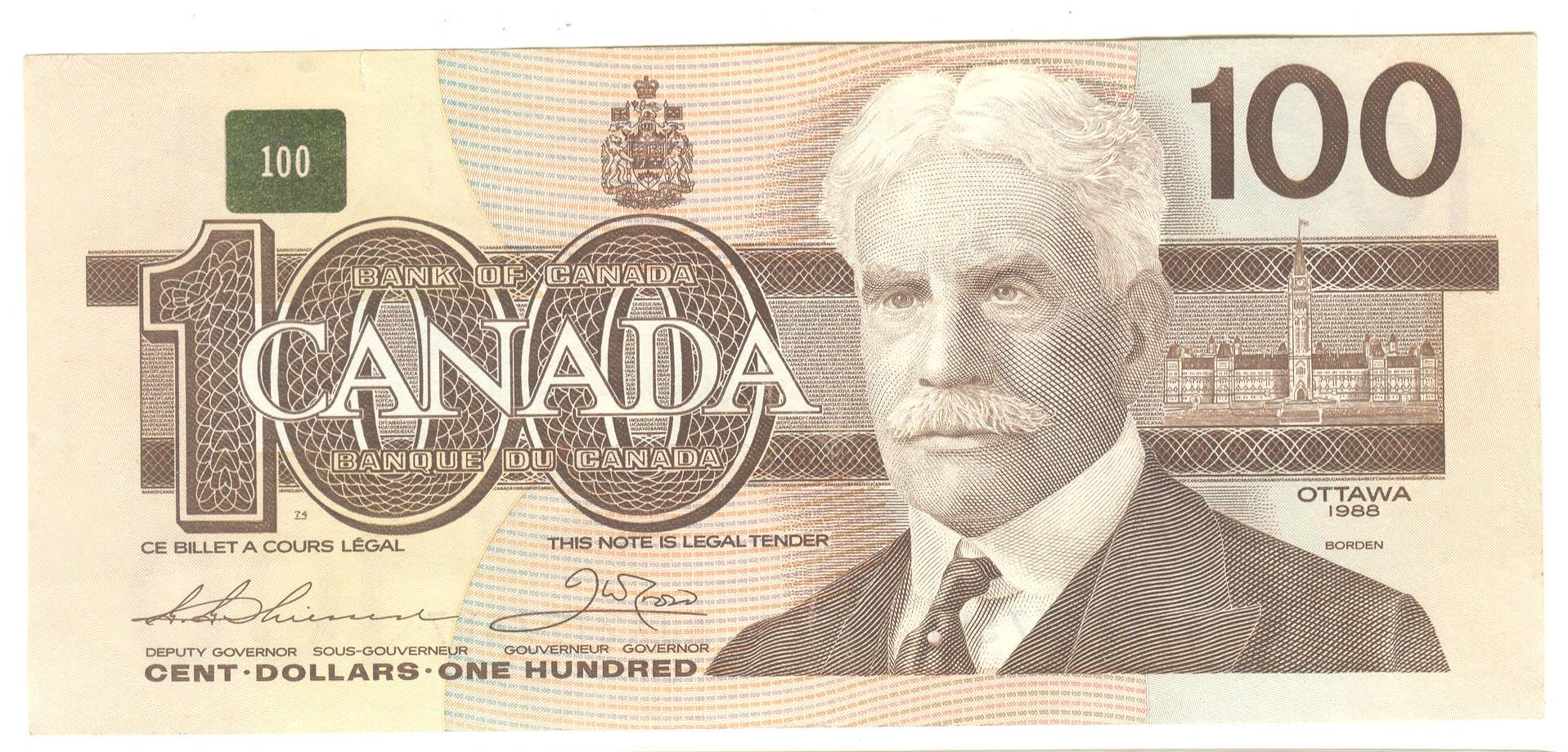 1988 One Hundred Dollars Replacement, BC-60aA, EF with small tear, Thiessen Crow, serial AJX2177547 Hidden BPN.