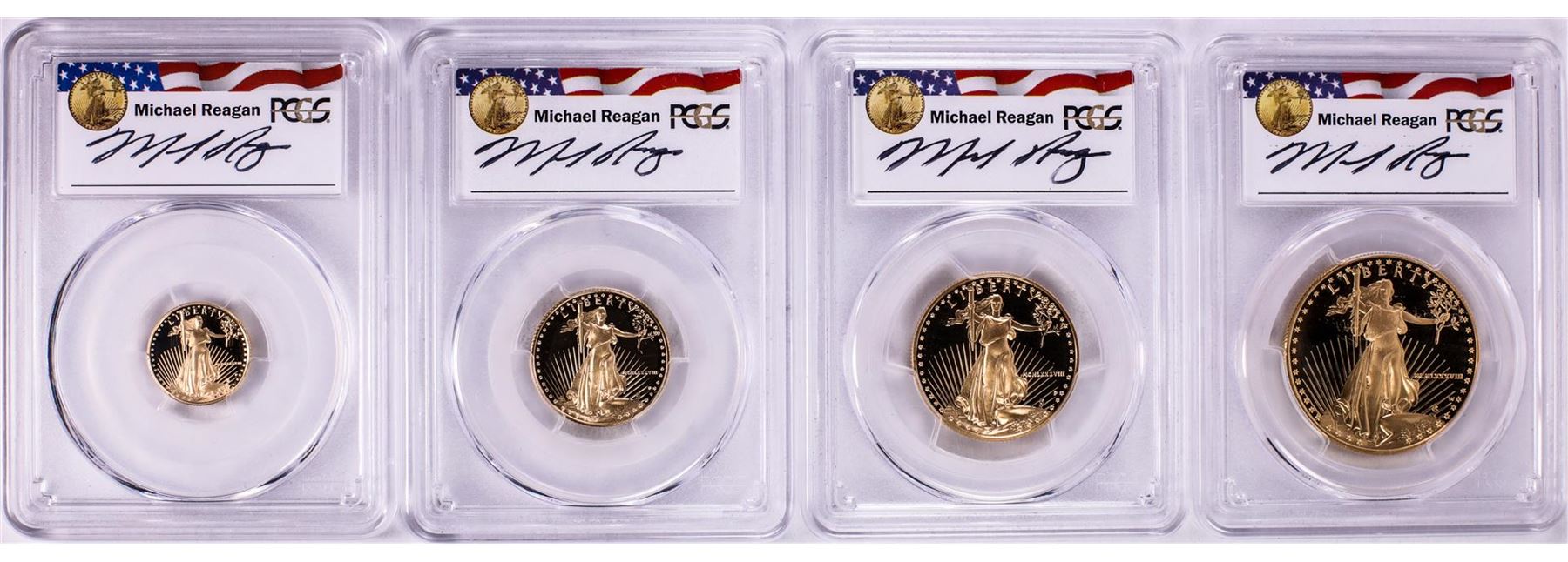 One 1988 Proof American Gold Eagle (4) Coin Set PCGS PR69DCAM Michael Reagan Signature. PCGS Graded.