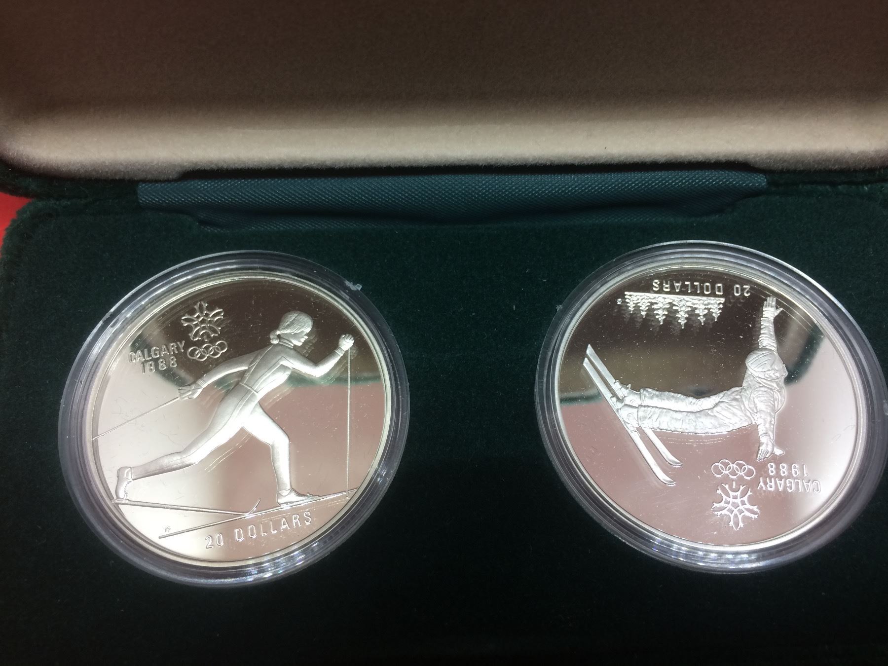 1988 Proof Coin 20$ set of Two Sterling Coin 2 x 1 Troy OZ-Free-Style Skiing
