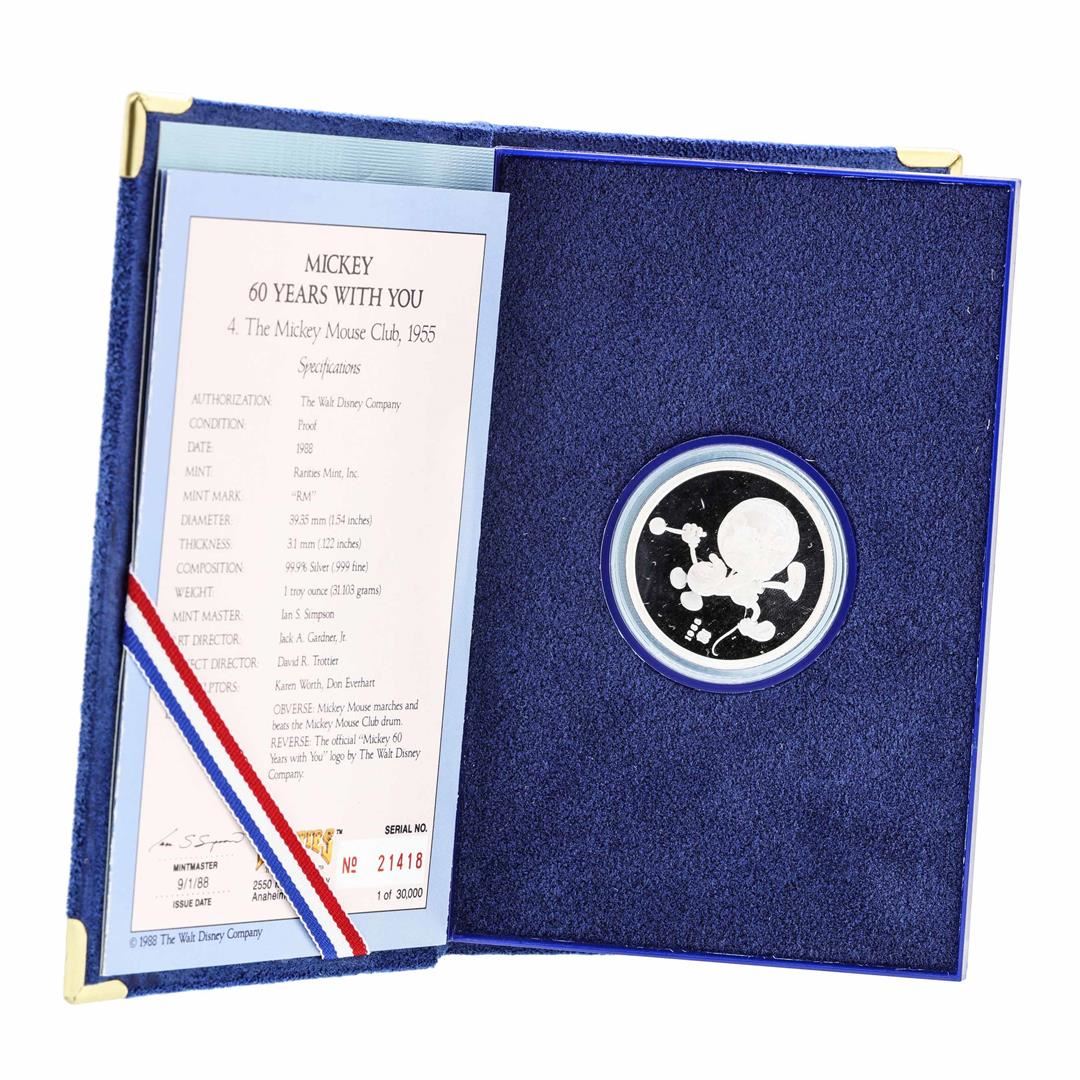 One 1988 Rarities Mint .999 Fine Silver 1 oz. Mickey Mouse Club Limited Edition Coin.